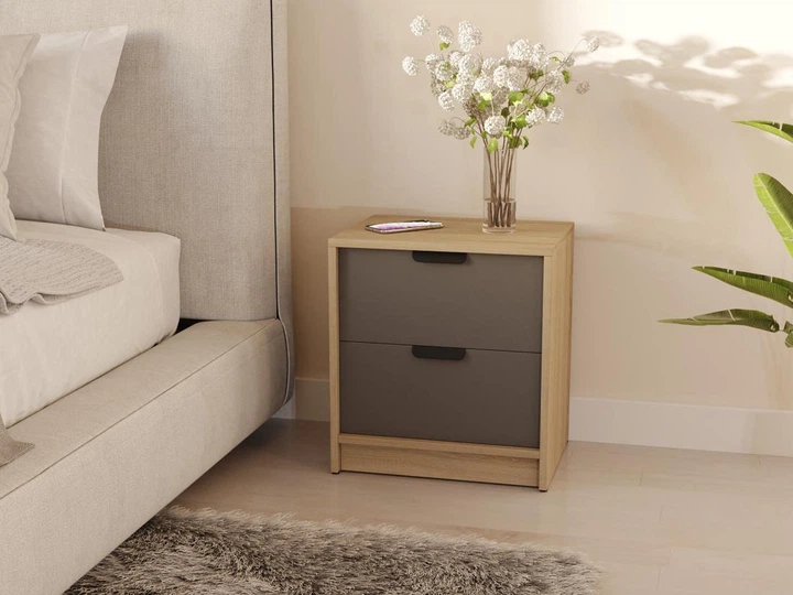 Тумбочка з двома висувними ящиками Moreli FT-203 Дуб сонома-фасад антрацит Ш450*В490*Г354мм