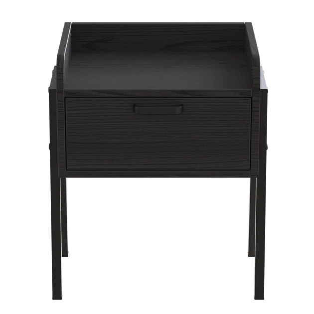 Тумба приліжкова з 2 шухлядами в спальню з чорними ручками T-203 від Moreli Дуб Сонома/Білий