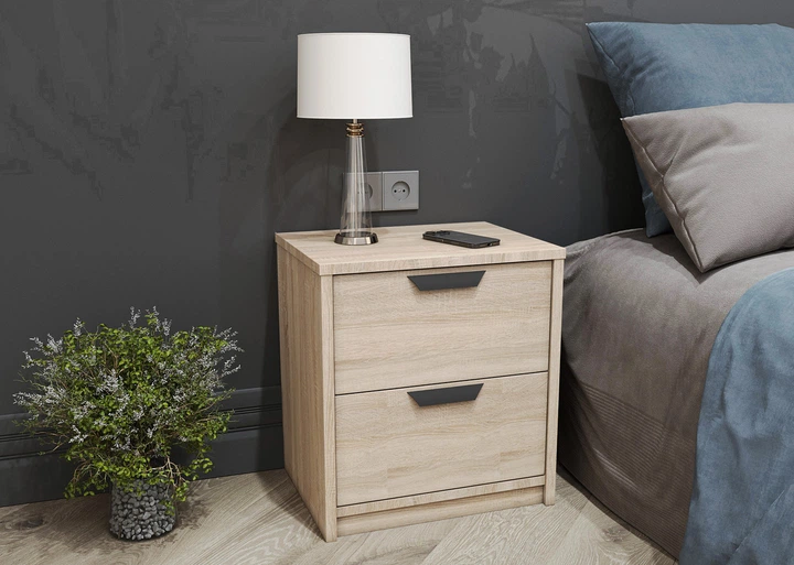 Приліжкова тумбочка для дому з ручками на 2 шухляди з ДСП FST-11D
