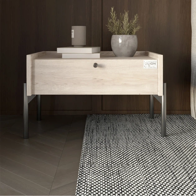 Тумба приліжкова LION Wood з однією шухлядою Дуб Сонома Трюфель (чорні ножки) (LION-041323)