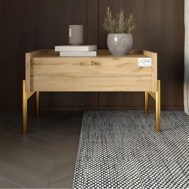 Тумба приліжкова LION Wood з однією шухлядою Дуб Артизан (золоті ножки) (LION-041316)