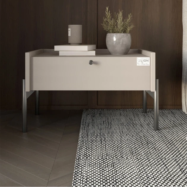 Тумба приліжкова LION Wood з однією шухлядою Кашемір (чорні ножки) (LION-041325)