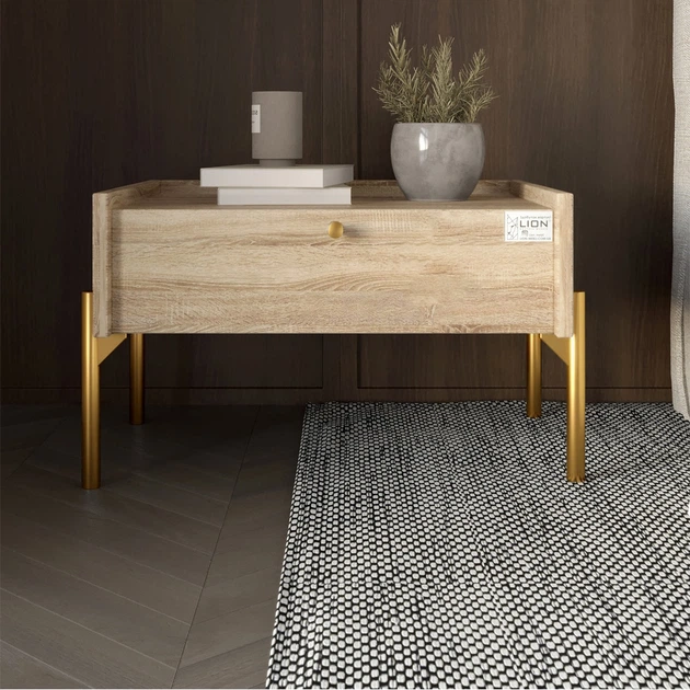 Тумба приліжкова LION Wood з однією шухлядою Дуб Сонома (золоті ножки) (LION-041320)