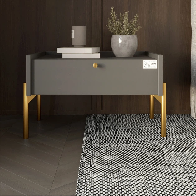 Тумба приліжкова LION Wood з однією шухлядою Самоа Димчастий (золоті ножки) (LION-041330)