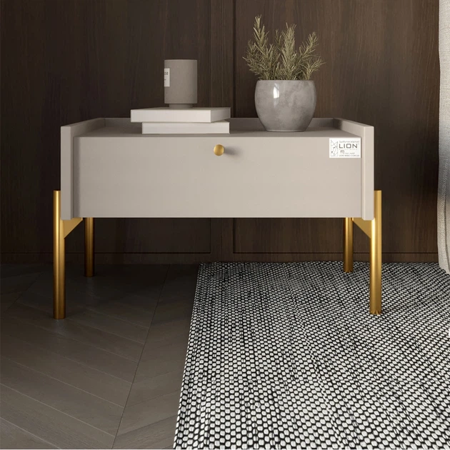 Тумба приліжкова LION Wood з однією шухлядою Кашемір (золоті ножки) (LION-041324)