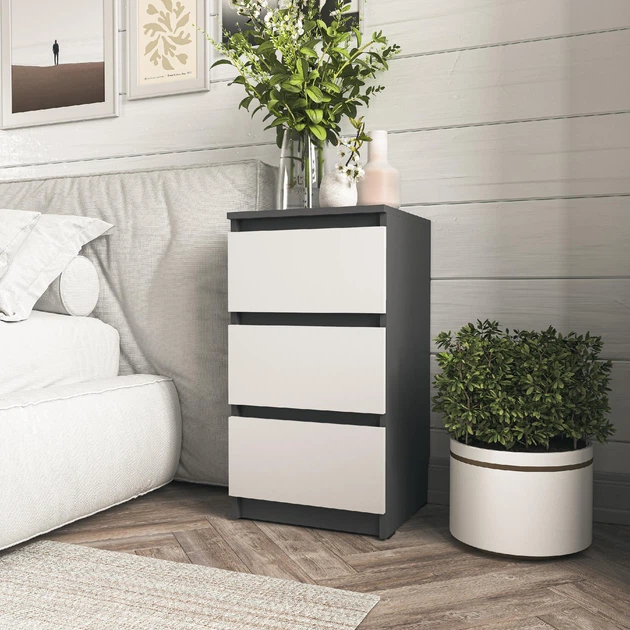 Тумба приліжкова 3 ящики шухляди 400х758х398 см універсал (РТ-216) Антрацит/Білий