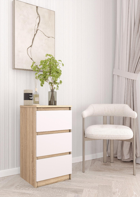 Тумба приліжкова 3 ящики шухляди 40х76х40 см універсал Дуб Сонома/Білий (РТ-216)