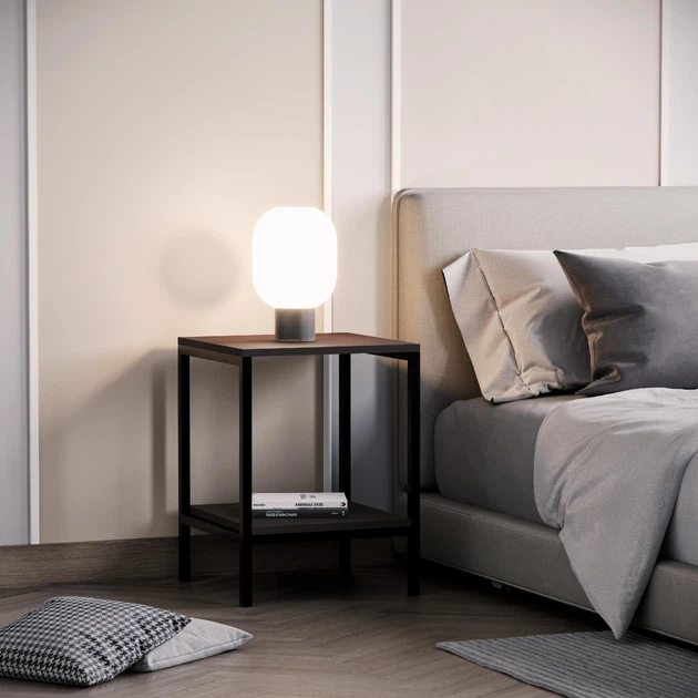 Приліжкова тумба для дому в стилі лофт з металу та ДСП 40х53,2х40 см Бетон (N-15BT)
