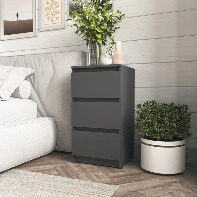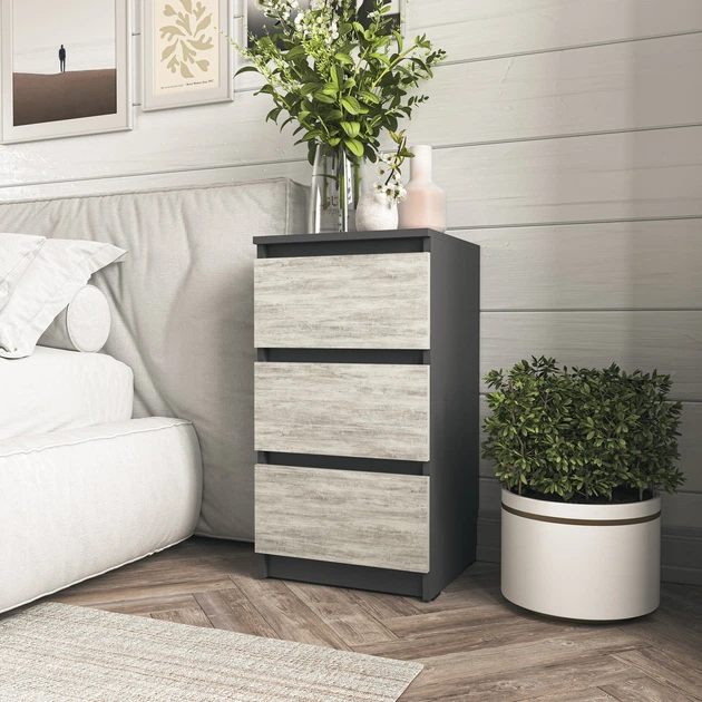 Прикроватна тумбочка на 3 шухляди Moreli T-216 Ш400/В758/Г398 Антрацит-Бетон