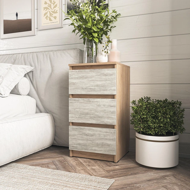 Тумба приліжкова Moreli FТ-216 з трьома висувними ящиками без ручок 400х760х400 мм Дуб Сонома/Бетон