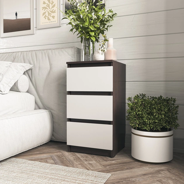 Прикроватна тумбочка на 3 шухляди Moreli T-216 Ш400/В758/Г398 Венге темний-Білий