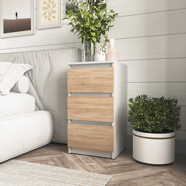 Прикроватна тумбочка на 3 шухляди Moreli T-216 Ш400/В758/Г398 Білий-Дуб сонома