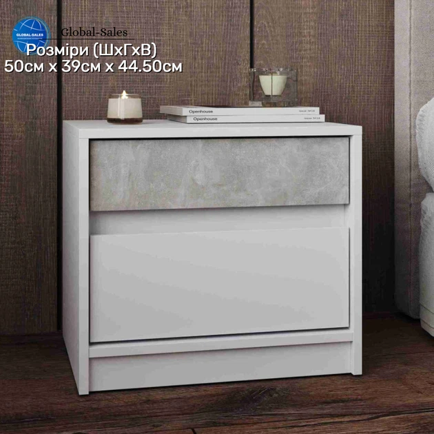 Тумба приліжкова 500 СТАЙЛ, Білий, Бетон