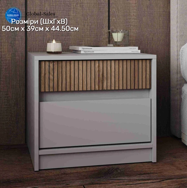 Тумба приліжкова 500 СТАЙЛ, Кашемір, Крафт Сірий