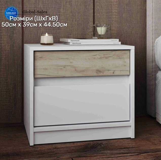 Тумба приліжкова 500 СТАЙЛ, Білий, Дуб Канелла