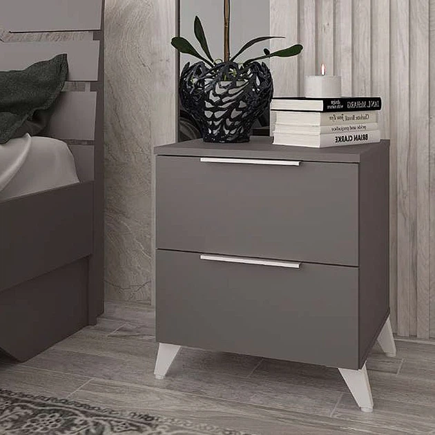 Тумбочка приліжкова Tobi Sho Lea T-225 з двома шухлядами для спальні, 400х500х400 мм Антрацит