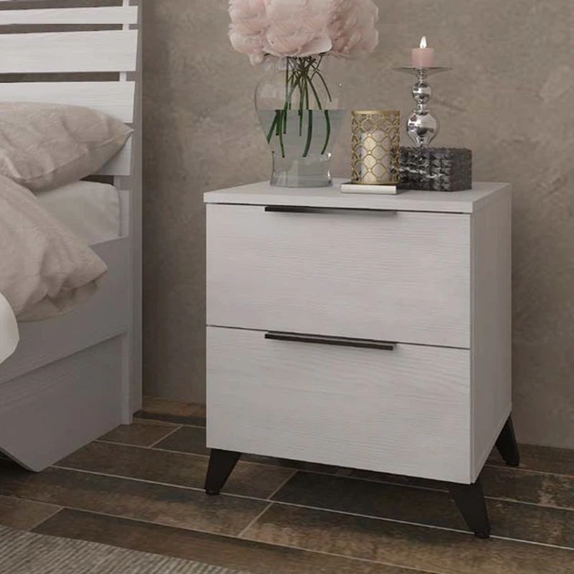 Тумбочка приліжкова Tobi Sho Lea T-225 з двома шухлядами для спальні, 400х500х400 мм Білий
