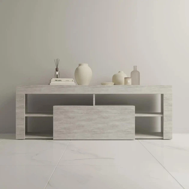 Тумба для телевізора ЛДСП 2 дверки з фасадами без ручок 1402х400х400 мм РR-14 Бетон/Білий