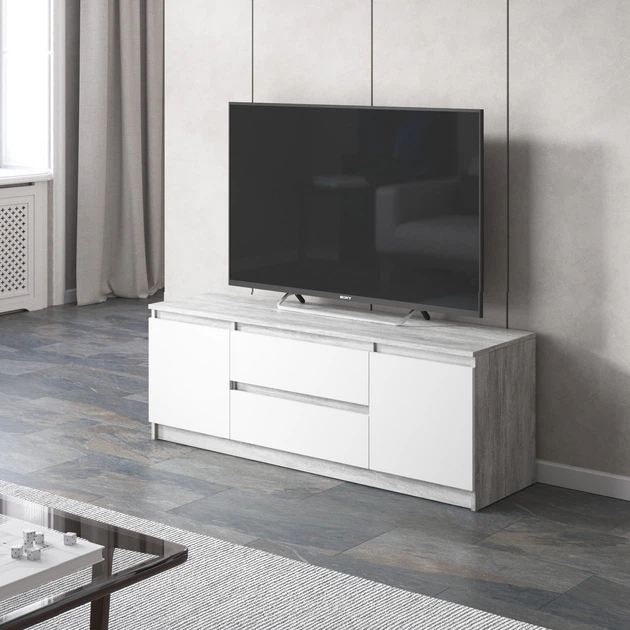 Сучасна тумба під телевізор VAYS Бетон + Білий 140х40х53 см