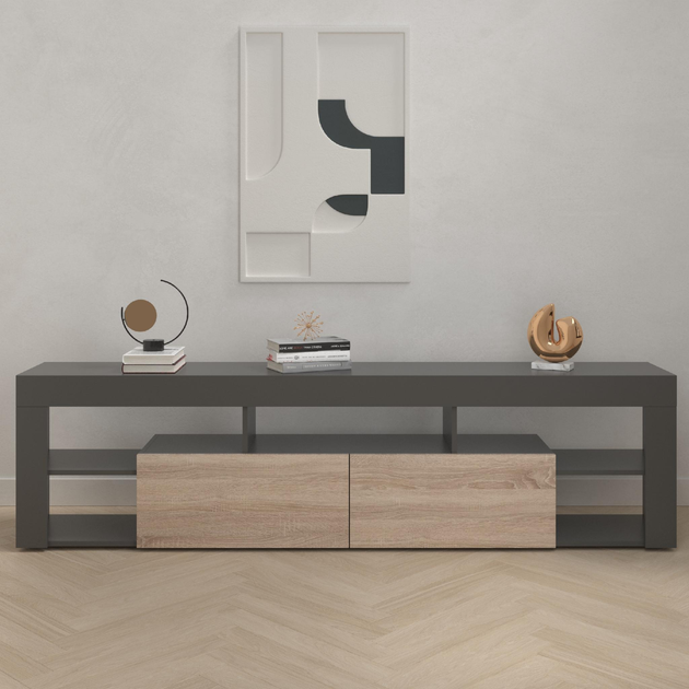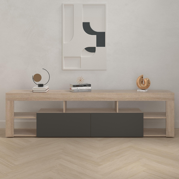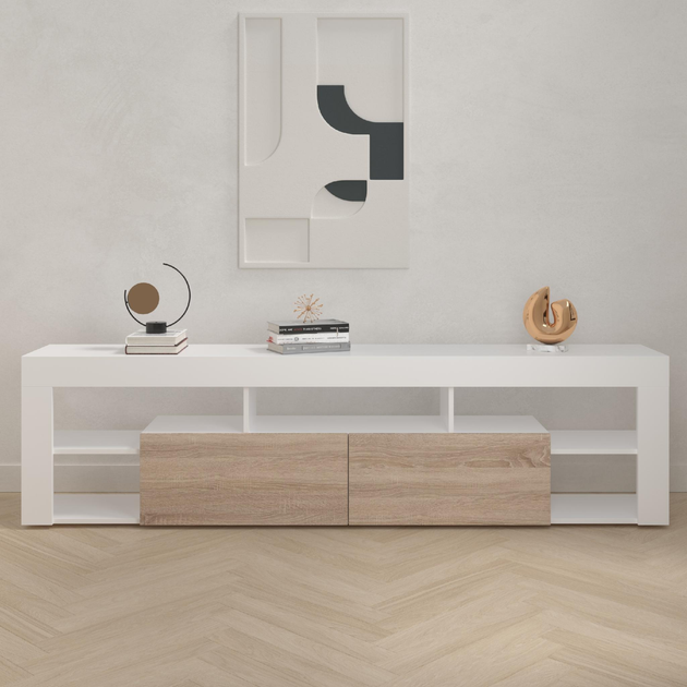 Тумба під телевізор, комод для дому під ТВ з 5 полицями та 2 нішами з ДСП K-200B+D