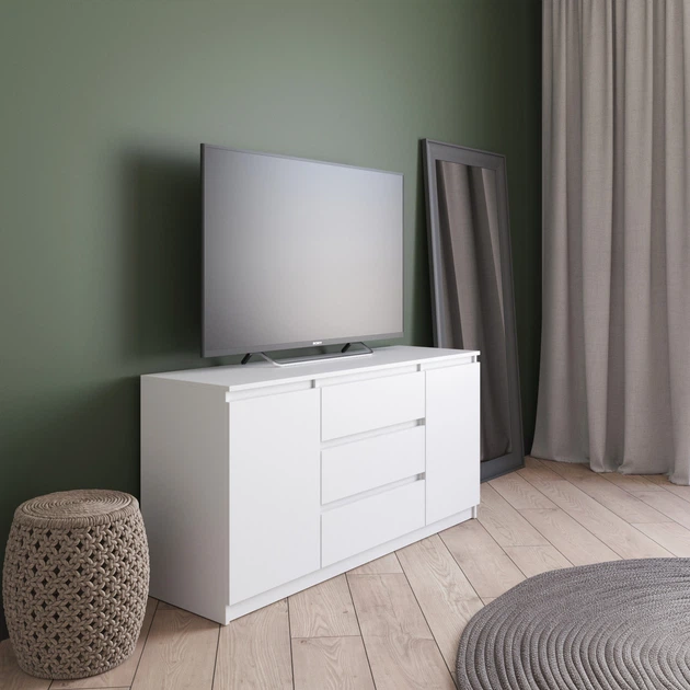 Комод тумба ТВ на 3 висувних шухляди та дві двері з фасадами без ручок R-15 Білий