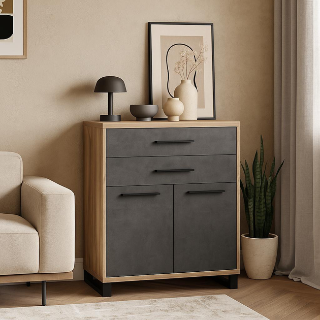 Містка стильна тумба-комод з висувними ящиками в стилі лофт у вітальню Меблі Сервіс "Омега" 83х109х55 см дуб тютюно-матера