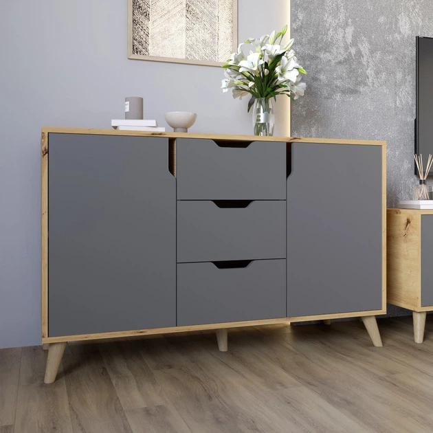Комод у вітальню з ніжками в кольорі Горіх світлий М-ЗОН Борн 1200 Дуб артизан/Антрацит (MZN-031089)