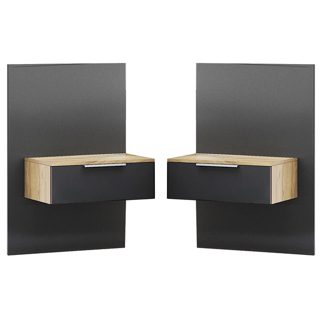 Тумби приліжкові приставні 2 шт в спальню/вітальню ТМ МІРОМАРК ЛунаЛамінований ДСП Дуб крафт/Чорний (LN-32-LV)