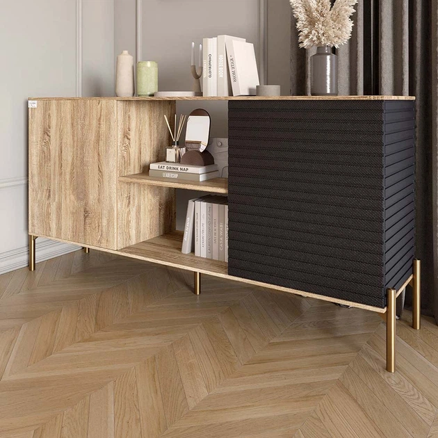 Комод відкритий на золотих металевих ніжках LION Грей Дуб Сонома трюфель/Асфальт (LION-042748)