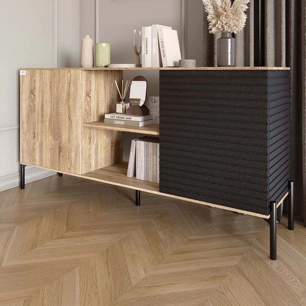 Комод відкритий на чорних металевих ніжках LION Грей Дуб Аппалачі/Асфальт (LION-042715)