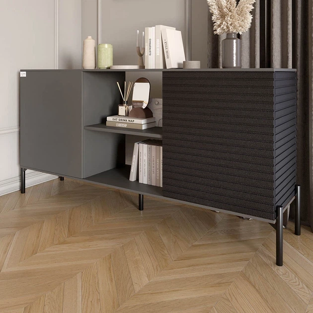 Комод відкритий на чорних металевих ніжках LION Грей Антрацит/Асфальт (LION-042712)