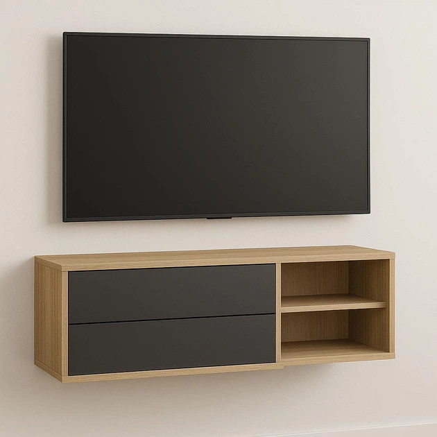 ТВ-тумба навісна №08 із ЛДСП (Дуб Сонома світлий - Антрацит) 45х150х 35 см.