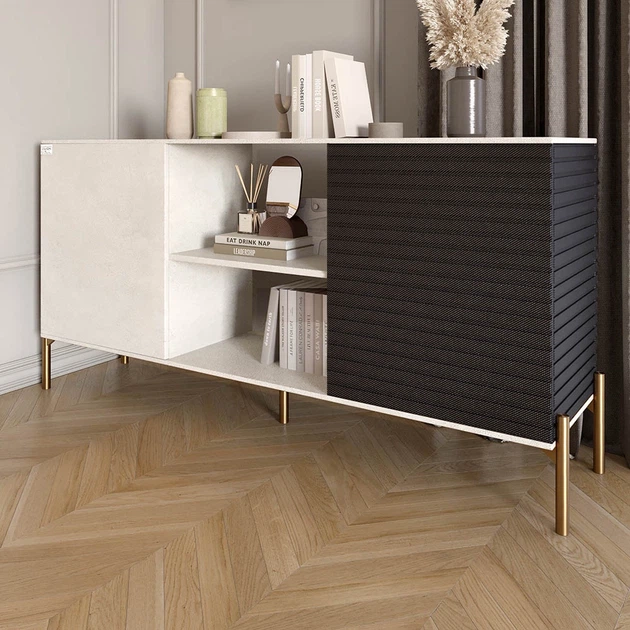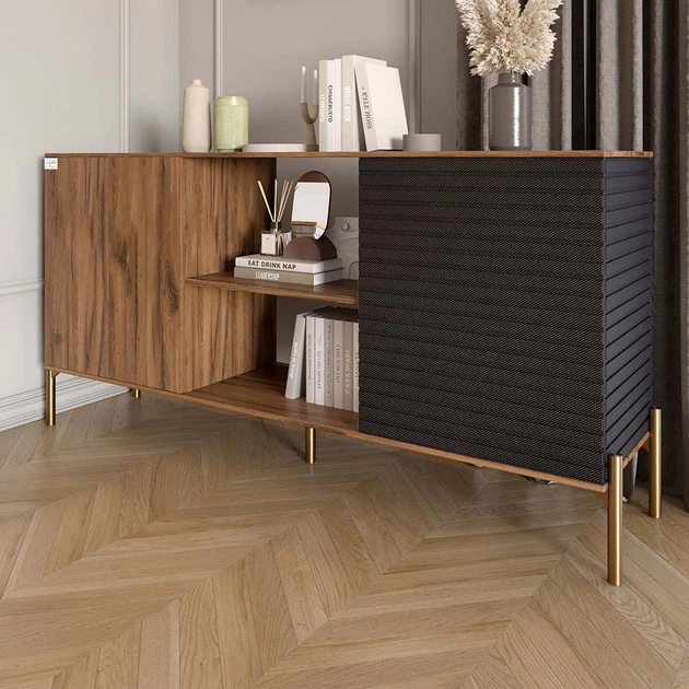 Комод відкритий на золотих металевих ніжках LION Грей Дуб Ліворно/Асфальт (LION-042746)
