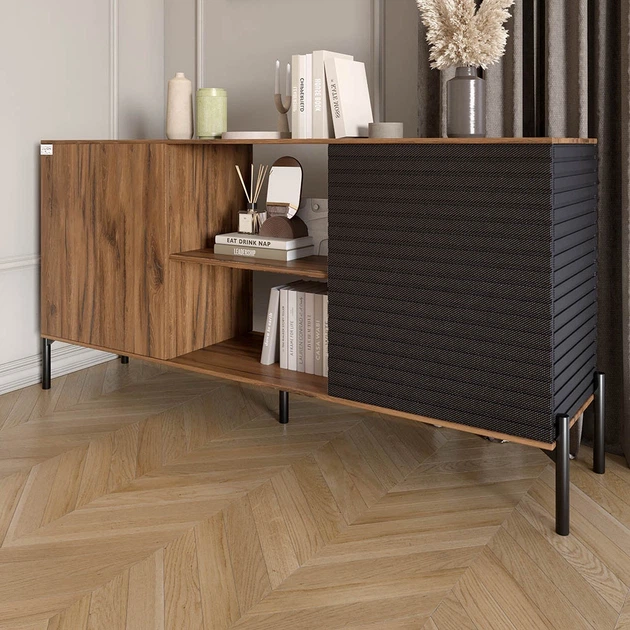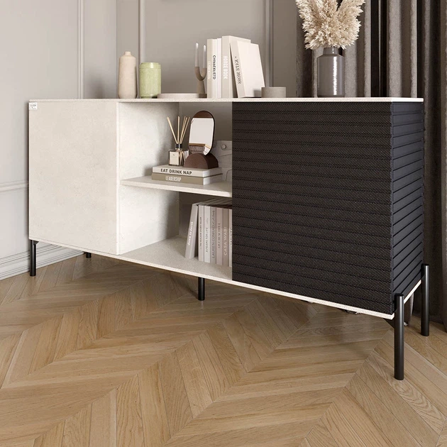 Комод відкритий на чорних металевих ніжках LION Грей Дуб Ліворно/Асфальт (LION-042717)