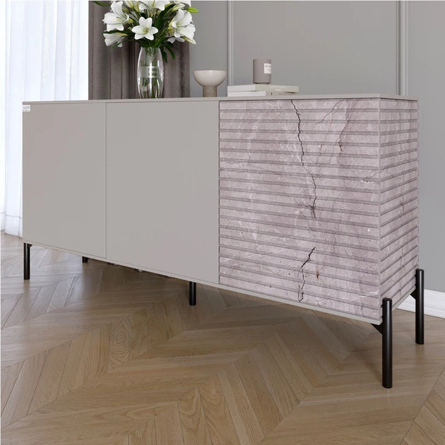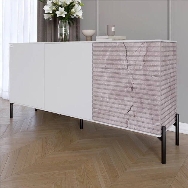 Комод закритий у вітальню на чорних металевих ніжках LION Грей 154x38x76,5 см Німфея Альба (білий)/Камінь (LION-041799)