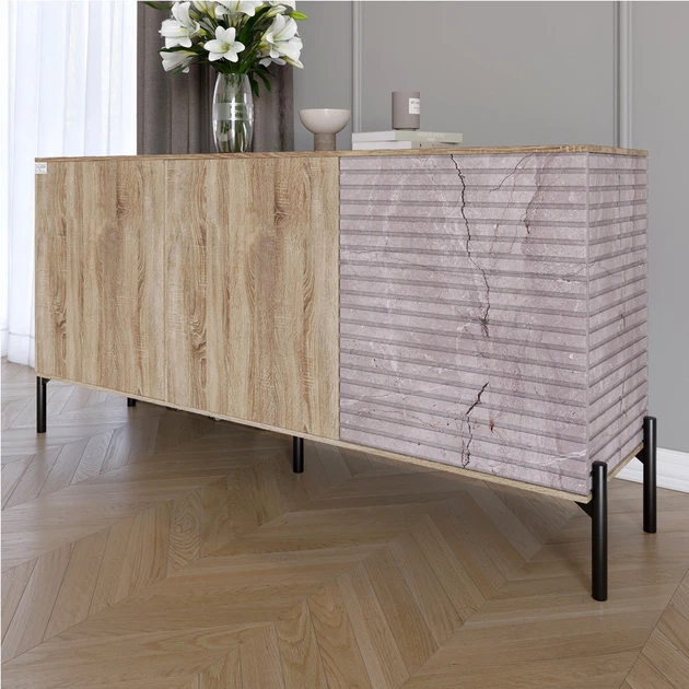 Комод закритий у вітальню на чорних металевих ніжках LION Грей 154x38x76,5 см Дуб сонома трюфель/Камінь (LION-041796)