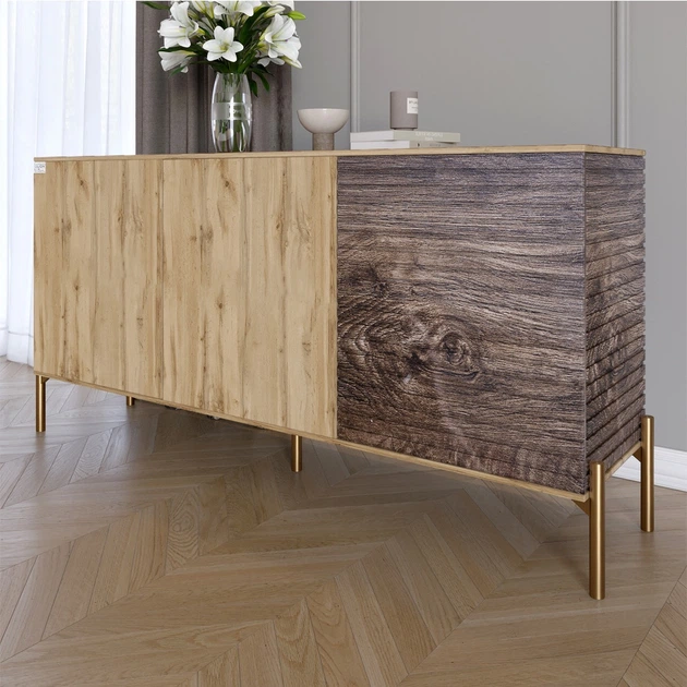 Комод закритий у вітальню на золотих металевих ніжках LION Грей 154x38x76,5 см Дуб Артизан/Дерево (LION-041839)