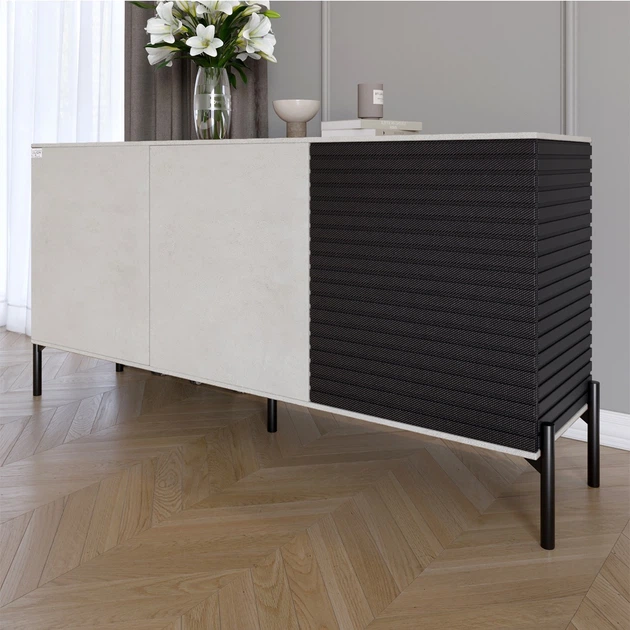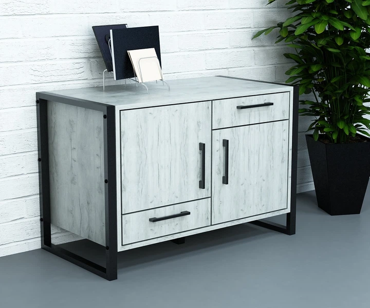 Комод закритий у вітальню на чорних металевих ніжках LION Грей Дуб Ліворно/Асфальт 1540x380x765 (LION-041564)