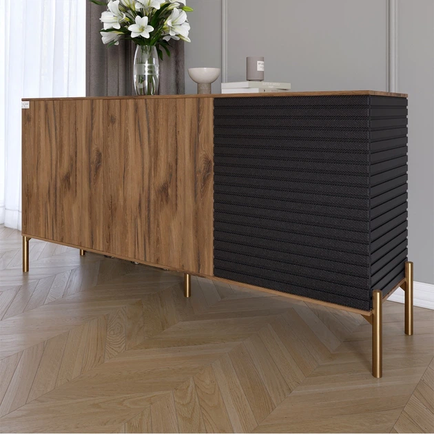 Комод закритий у вітальню на золотих металевих ніжках LION Грей 154x38x76,5 см Дуб Ліворно/Асфальт (LION-041825)