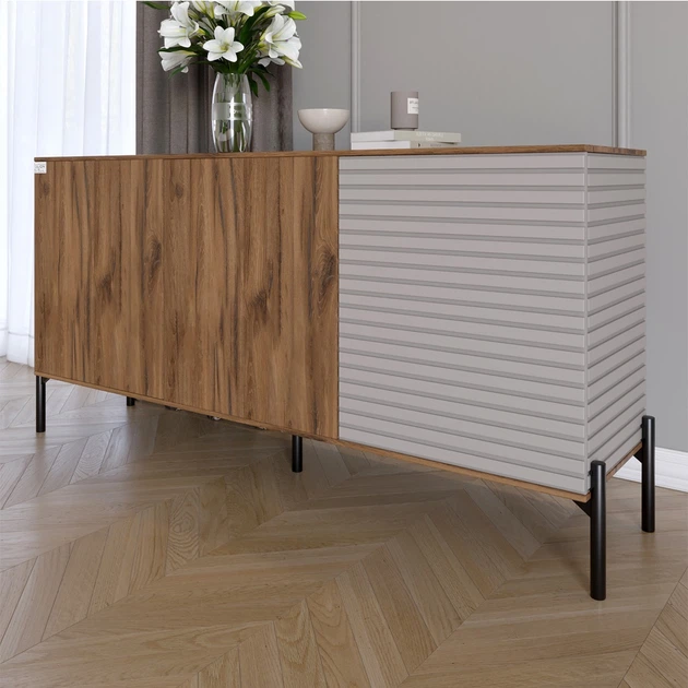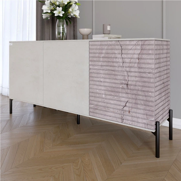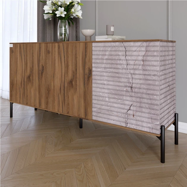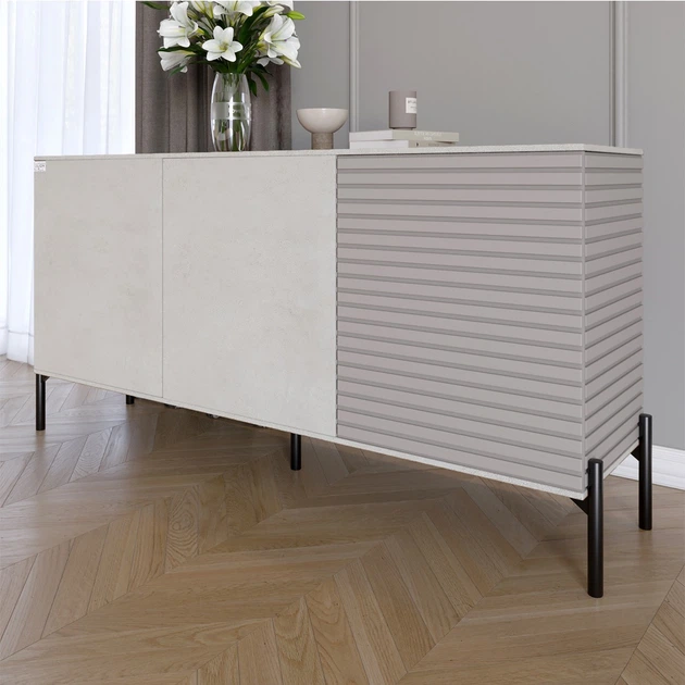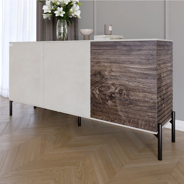 Комод закритий у вітальню на чорних металевих ніжках LION Грей 154x38x76,5 см Дуб Ліворно/Камінь (LION-041795)