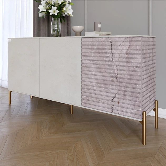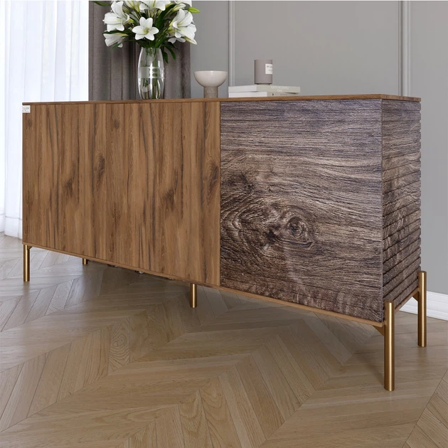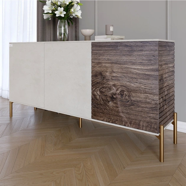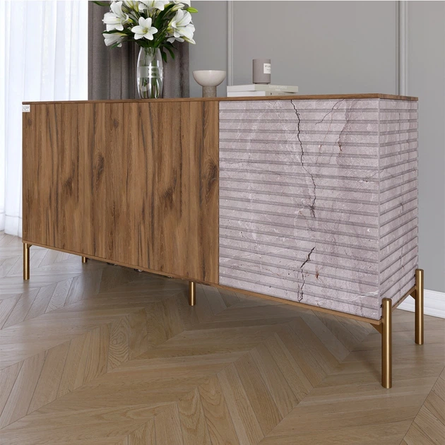 Комод закритий у вітальню на золотих металевих ніжках LION Грей 154x38x76,5 см Дуб Ліворно/Камінь (LION-041855)