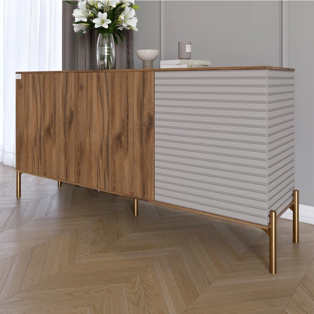 Комод закритий у вітальню на золотих металевих ніжках LION Грей 154x38x76,5 см Дуб Ліворно/Кашемір (LION-041870)