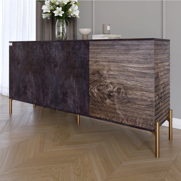 Комод закритий у вітальню на золотих металевих ніжках LION Грей 154x38x76,5 см Бетон темний/Дерево (LION-041835)