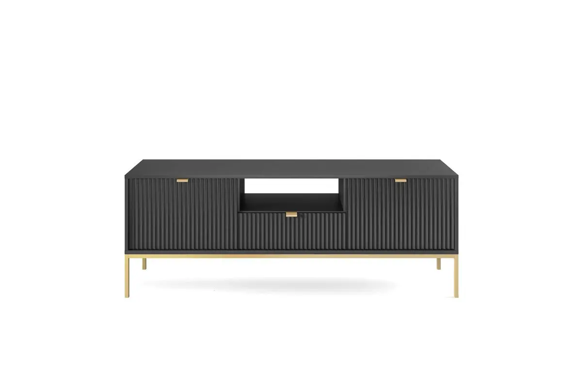 Тумба під телевізор Perfect Home Нова / Nova 2-дверна з 1 шухлядою і золотими ніжками RTV154 Чорний (PFH-091221)