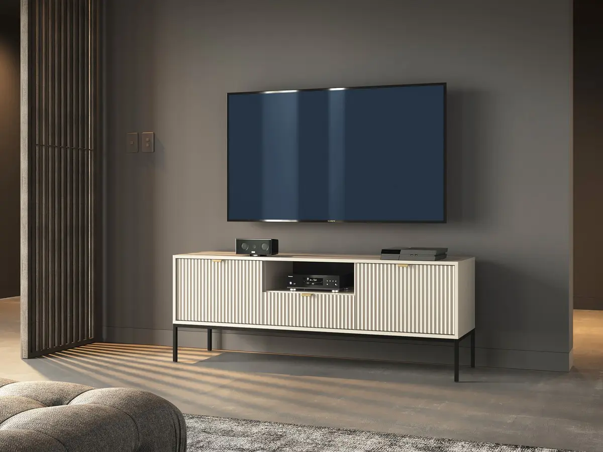 Тумба під телевізор Perfect Home Нова / Nova 2-дверна з 1 шухлядою і чорними ніжками RTV154 Кашемір (PFH-091230)