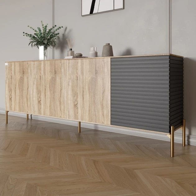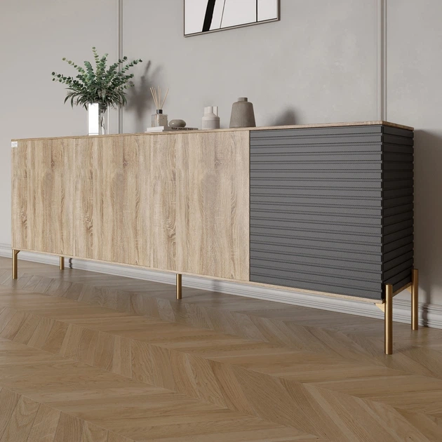 Комод на золотих металевих ніжках LION Грей 204x38x76,5 см Дуб сонома трюфель/Асфальт (LION-042667)