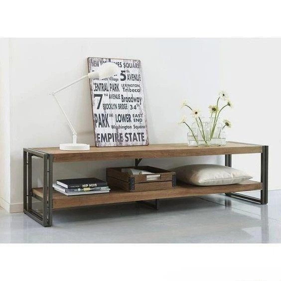 Дизайнерська тумба для телевізора в стилі Loft 160х40х50h Чорний/Дерево ATL511