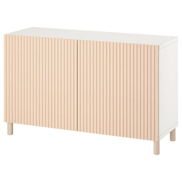 Комбінація для зберігання з дверцятами IKEA БЕСТО, білий, Бьорковікен, Меджарп покритий березою, 120x42x74 см,