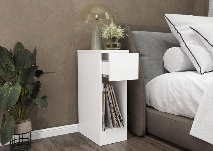 Тумба приліжкова з шухлядою вузька 60х35х20 см. Біла