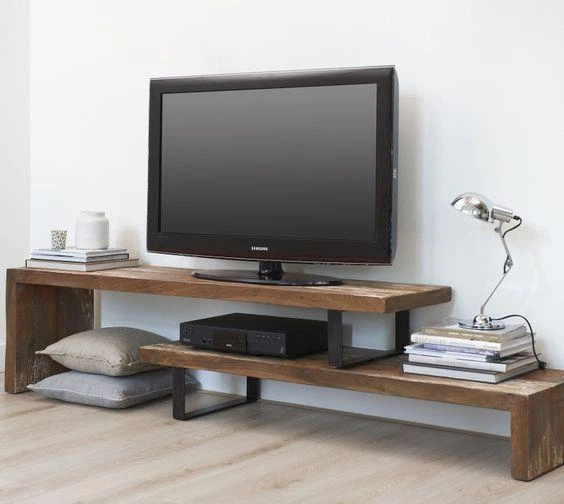 Дизайнерська тумба для телевізора в стилі Loft 200х30х60h Чорний/Дерево ATL1441